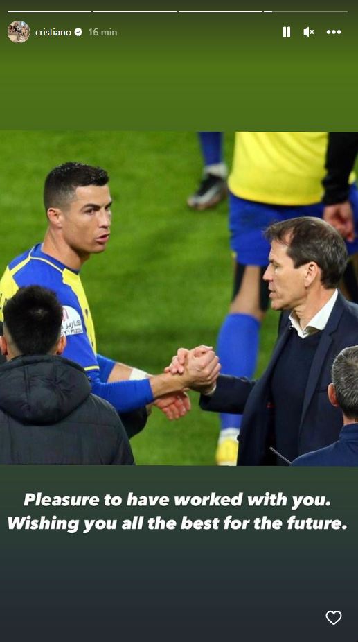 Cristiano Ronaldo deixou uma mensagem de boa sorte a Rudi Garcia, através de uma rede social Instagram.