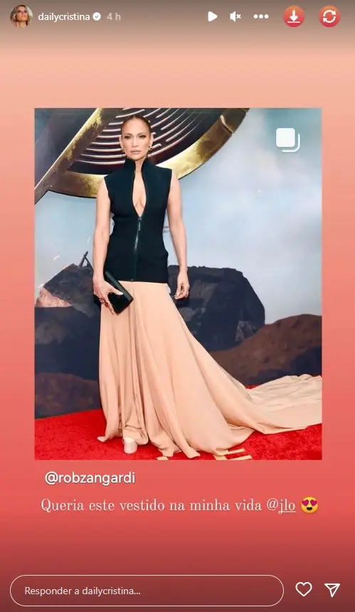 Cristina Ferreira fixou deslumbrada com o outfit que Jennifez Lopez usou na noite de segunda-feira. A apresentadora nesta manhã de terça-feira, dia 13, último dia das suas férias em Maiorca, partilhou na história do seu Instagram o look da cantora e escreveu: “Queria este vestido na minha vida”.