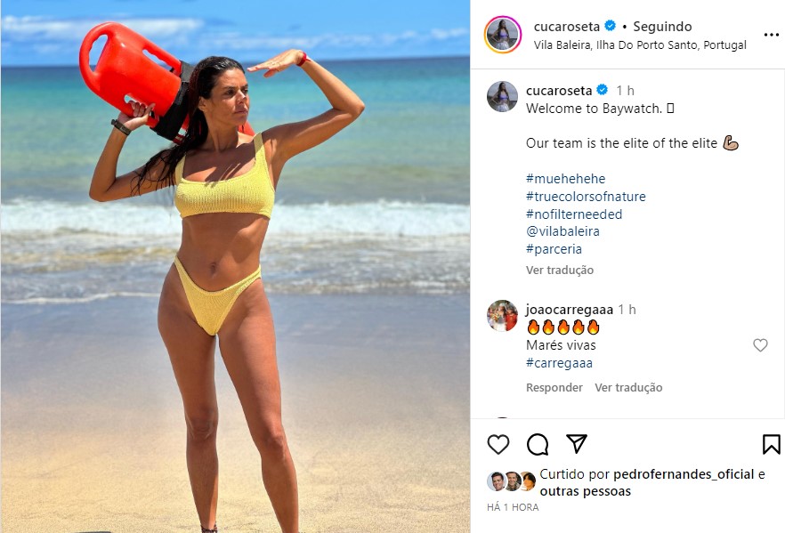 A caixa de comentários encheu-se de elogios como: “Ai que me estou a afogar 😌😍”, “Melhor que a Pamela Anderson 😂” ou “Tomara o Baywatch ter uma Musa Cantadeira deste calibre!!!”.