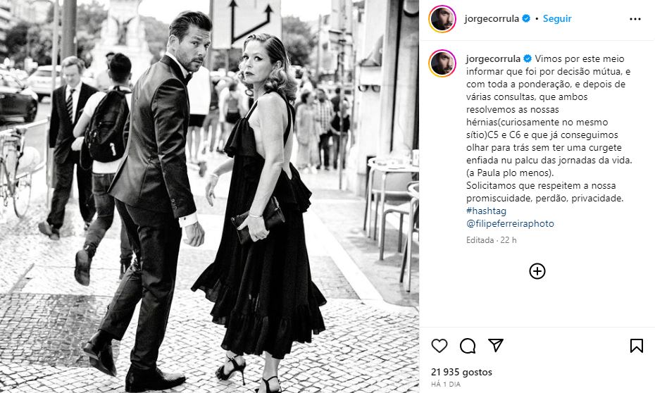 Recentemente, o ator e Paula Lobo Antunes foram operados a “algumas hérnias”. “Solicitamos que respeitem a nossa promiscuidade, perdão, privacidade”, acrescentou.