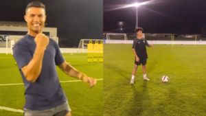Cristiano Ronaldo imita livre do filho: “Esta foi melhor do que a tua”