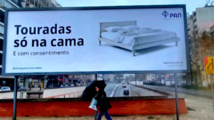 “Touradas só na cama e com consentimento”. Tal frase pode ler-se no cartaz apresentado esta quinta-feira, 22 de fevereiro, perto da Praça de Touros do Campo Pequeno, em Lisboa.