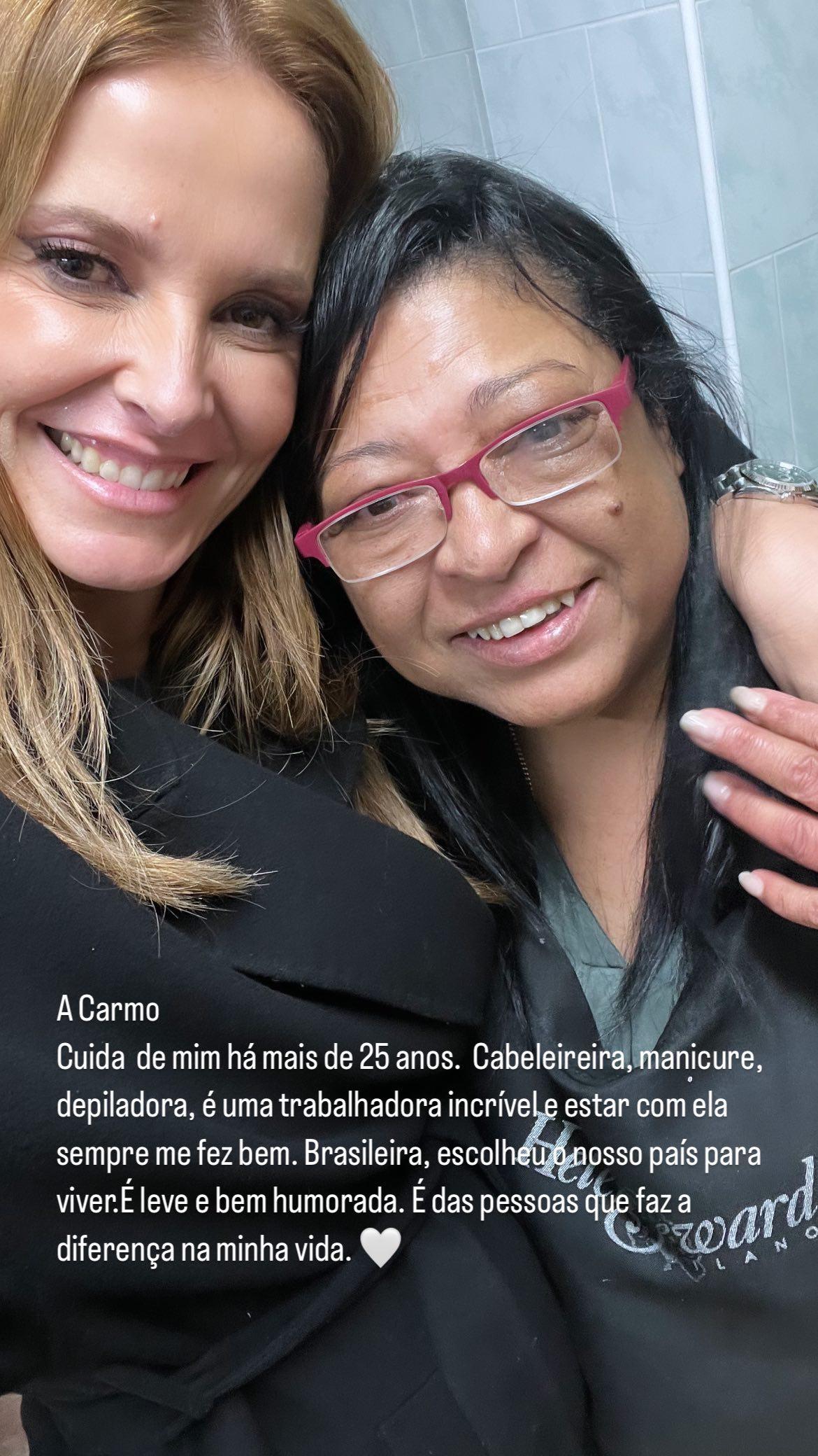 “A Carmo. Cuida de mim há 25 anos. Cabeleireira, manicure, depiladora. É uma trabalhadora incrível e estar com ela sempre me fez bem”, começou por escrever.