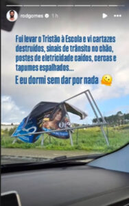 “Fui levar o Tristão à escola e vi cartazes destruídos, sinais de trânsito no chão, postes de eletricidade caídos, cercas e tapumes espalhados”, começou por escrever.