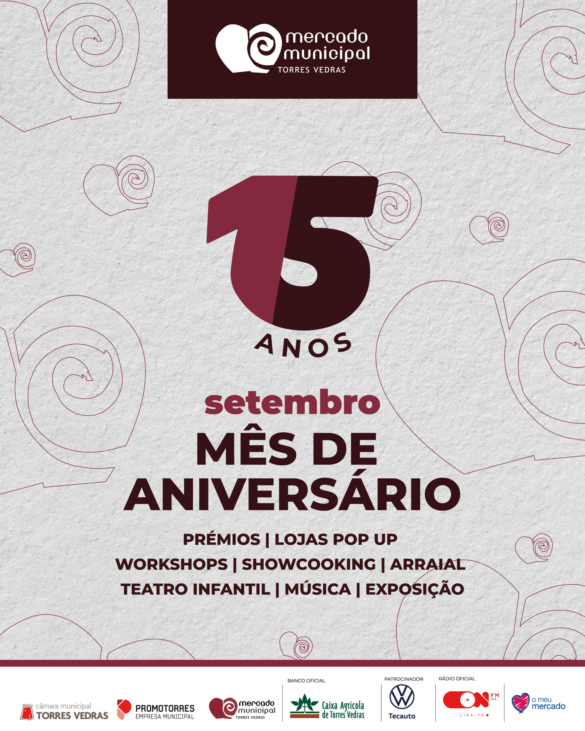 Convidamo-lo a juntar-se ao Mercado Municipal de Torres Vedras, durante todo o mês de setembro, para celebrar os seus quinze anos de muita tradição, cultura e produtos frescos.