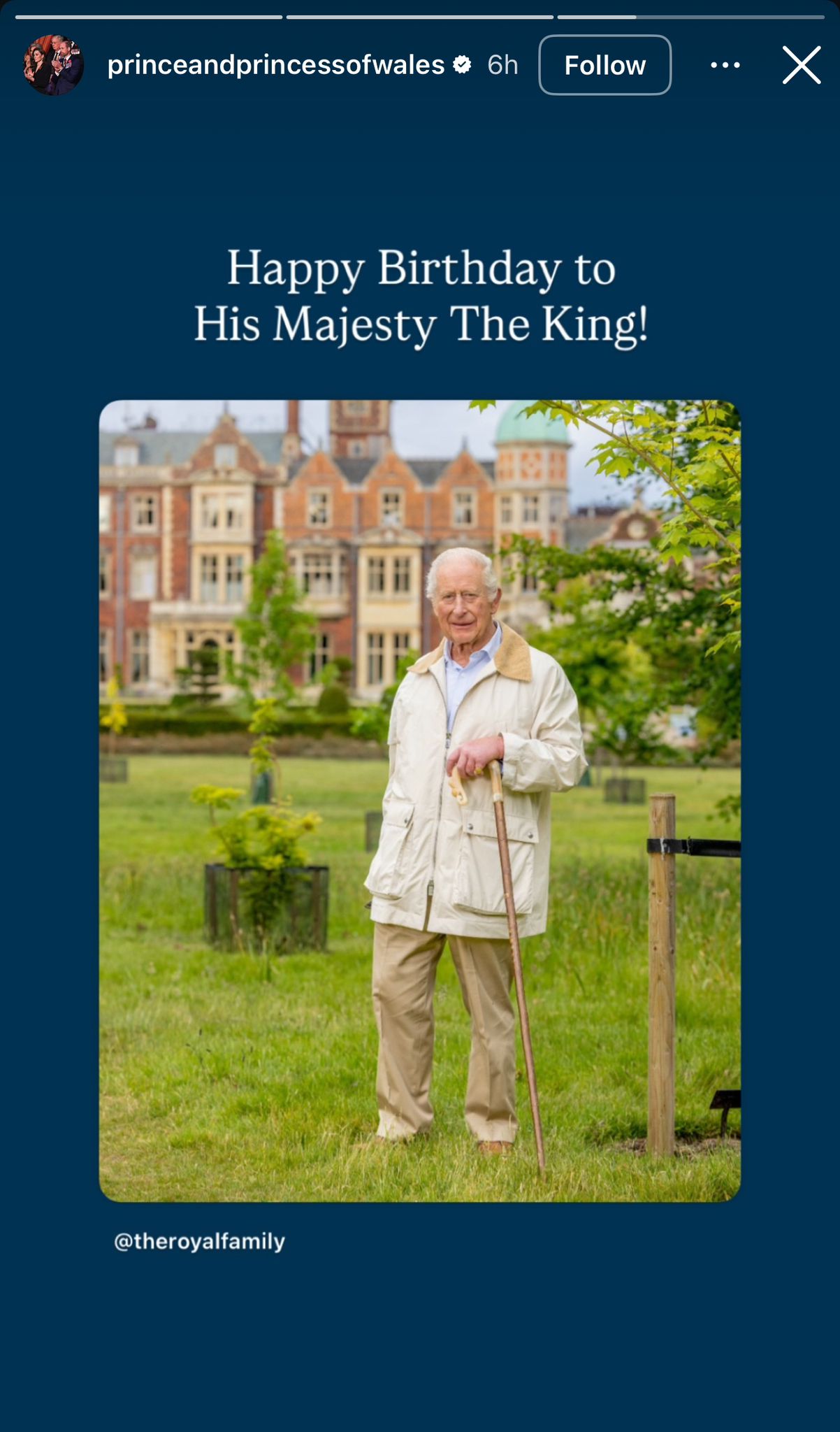 Nas redes sociais, o príncipe William e Kate Middleton assinalaram a data: “Feliz aniversário para Sua Majestade, o rei”, pode ler-se.
