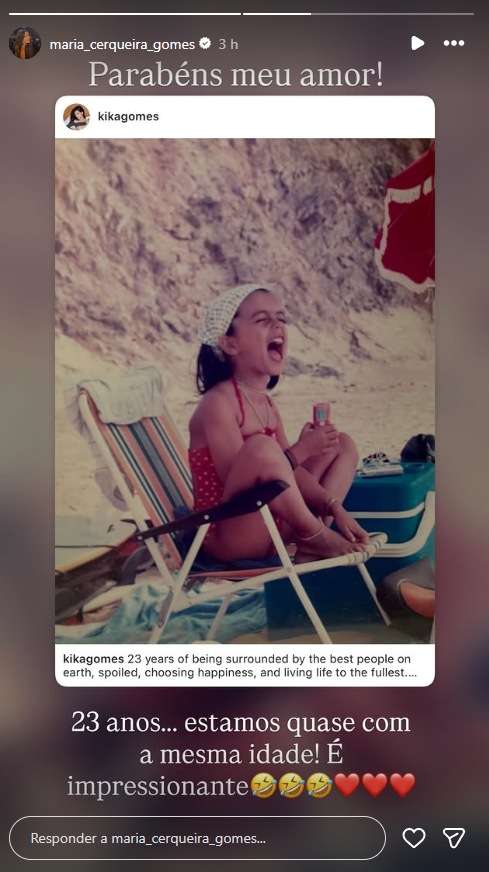 Maria Cerqueira Gomes também deixou uma mensagem de aniversário à filha.