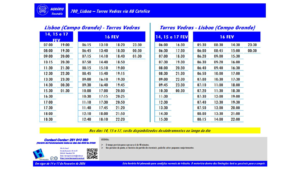 Horário para os dias 14, 15 e 17 de fevereiro | 700_Lisboa – Torres Vedras via A8 Catefica