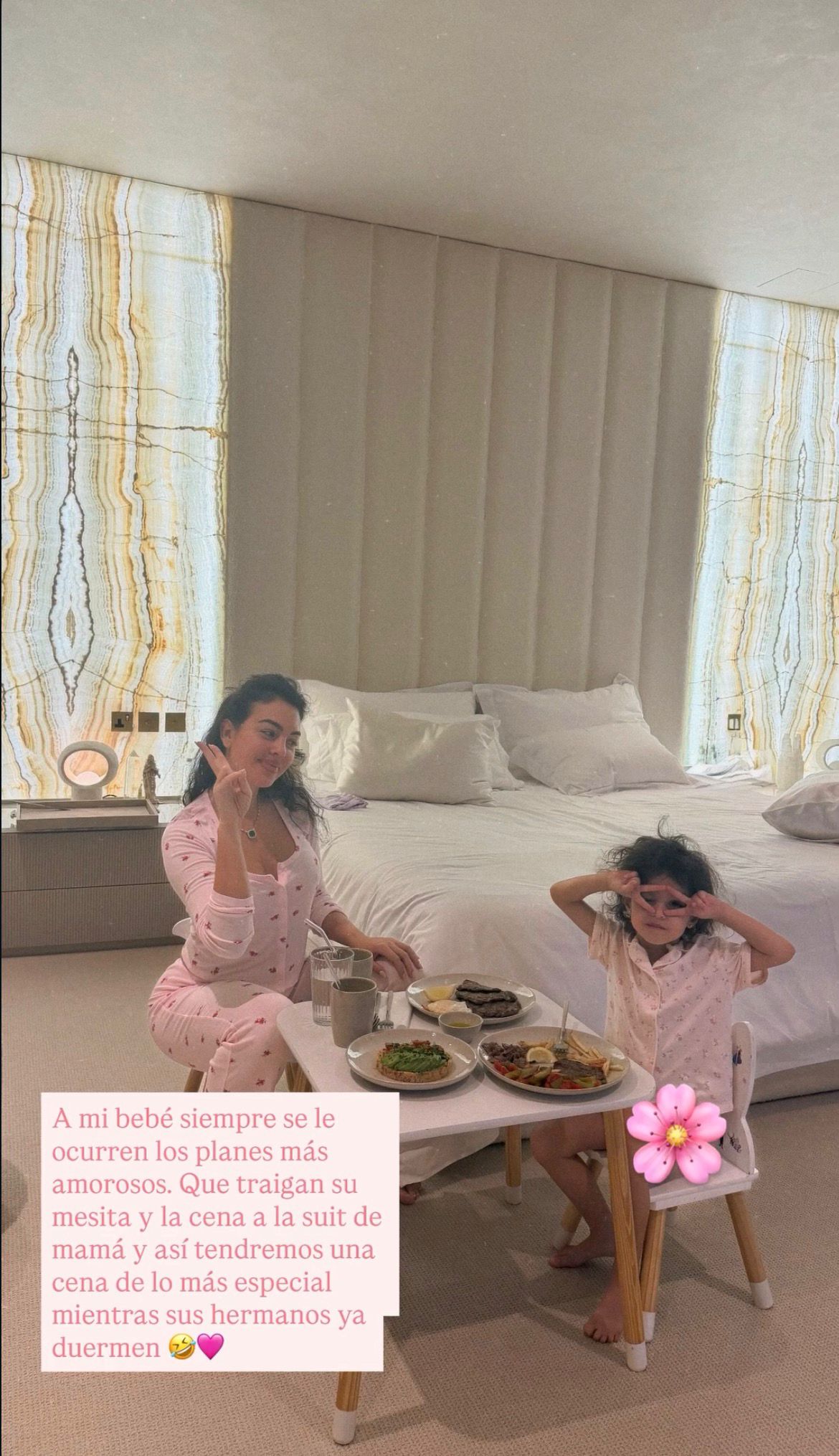 Georgina Rodríguez tem um jantar especial com Bella Esmeralda, fruto da sua relação com Cristiano Ronaldo.