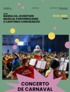Esta iniciativa contará com a participação da Banda da Juventude Musical Ponterrolense e de vários cantores convidados, prometendo uma noite onde a música filarmónica se cruza com o espírito festivo e a história destes 1o2 anos do Carnaval de Torres Vedras.