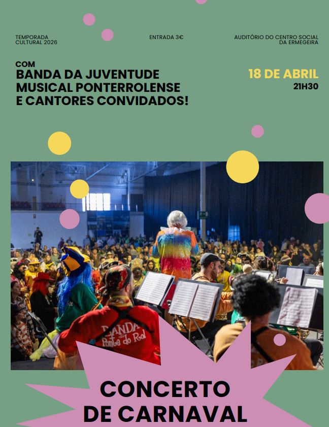 No âmbito da Temporada Cultural de 2026, a Sociedade Filarmónica Ermegeirense organiza, no próximo dia 18 de abril, sábado, o Concerto de Carnaval. O evento terá lugar no Auditório do Centro Social da Ermegeira, às 21h30.