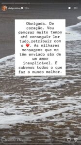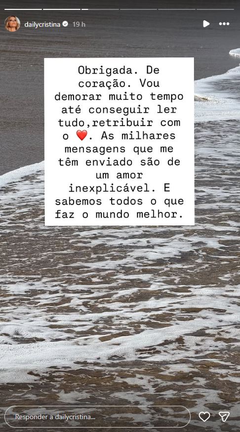 “Obrigada. De coração. Vou demorar muito tempo até conseguir ler tudo e retribuir com o coração”, começou por escrever.